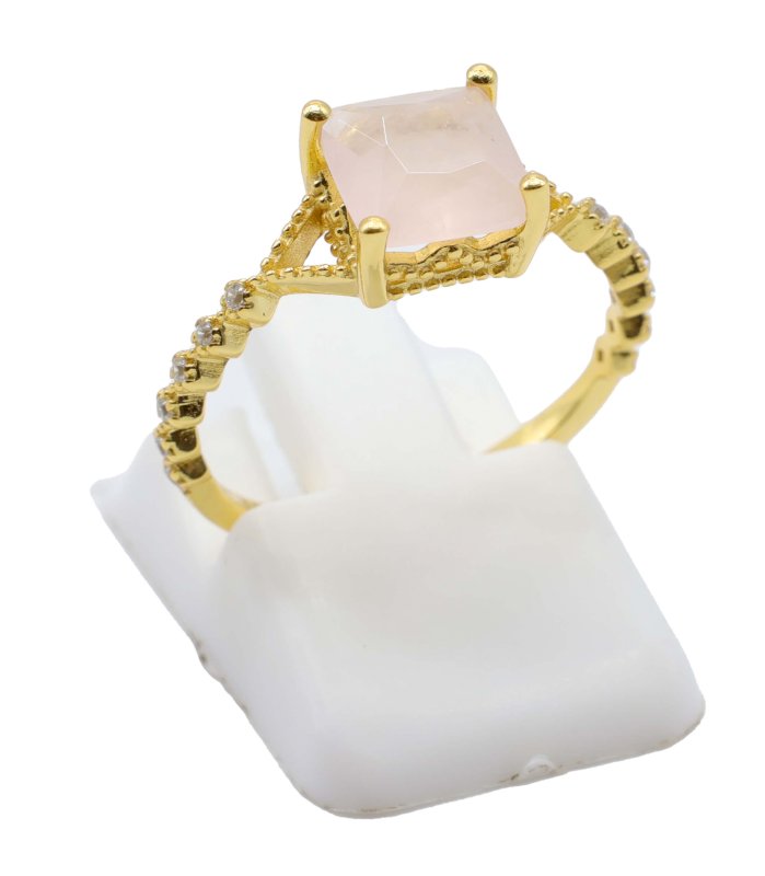 Anel em Argent 925 plaquée Or sertie d'um Quartzo Rose qualidade extra.