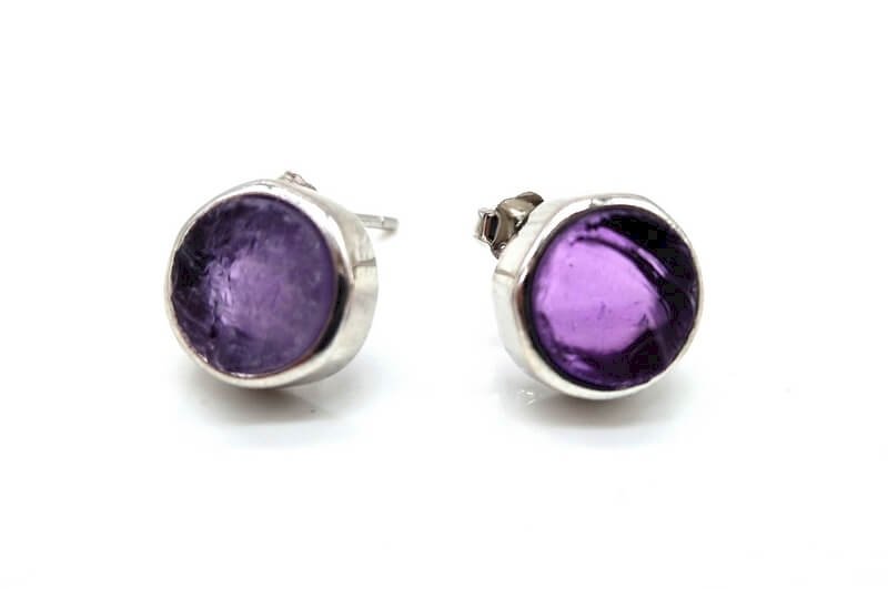 Brincos Prata 925 Ametista ronde bruta