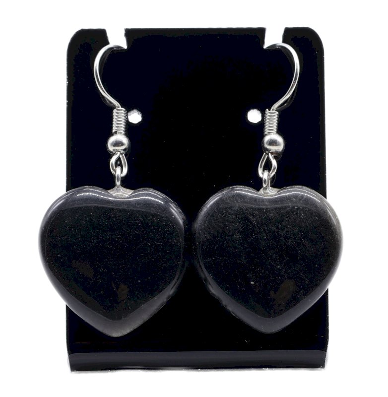 Brincos Coração Obsidiana Preta 4cm