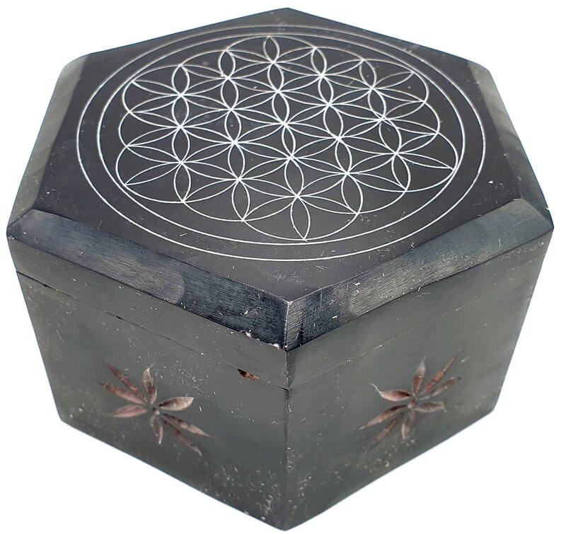 Caixa à Bijoux Pedra Hexagonale Flor de Vie 10cm