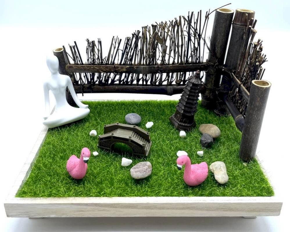 Jardin zen en bois para meditação, relaxation e décoration d'intérieur.