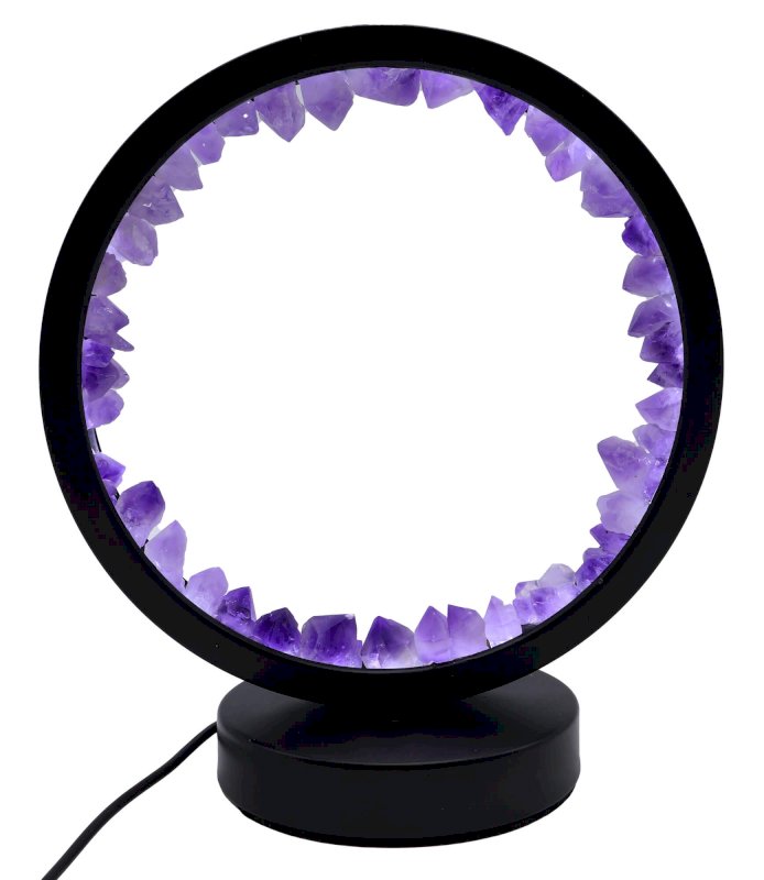 Lampe d'ambianeste incluant dos morceaux d'améthyste. Lampe tactio com 3 degrés d'éclairage. Prise type-C.