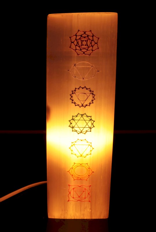 Lâmpada Selenite Rectangle Gravée 25cm - 7 Chakras