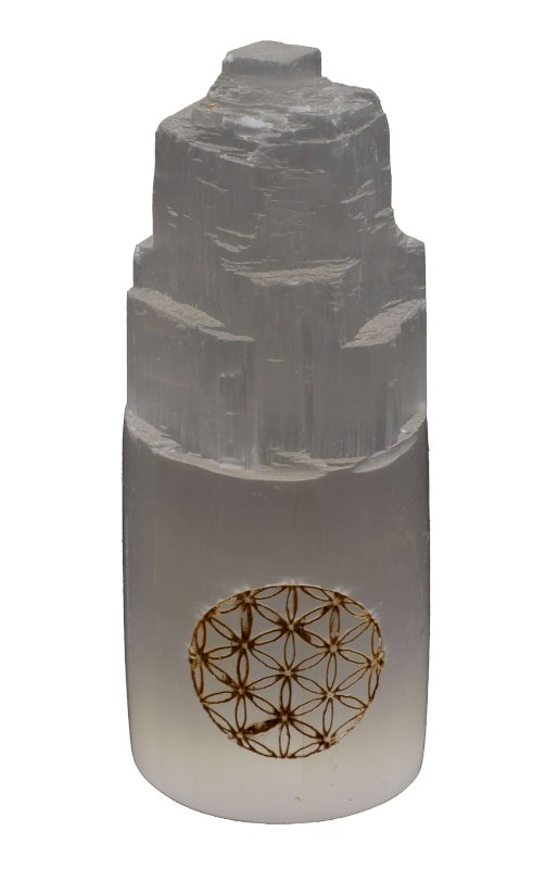Monolithe Selenite gravé 10cm - Flor de Vie