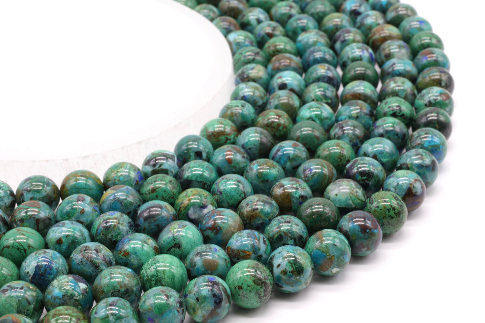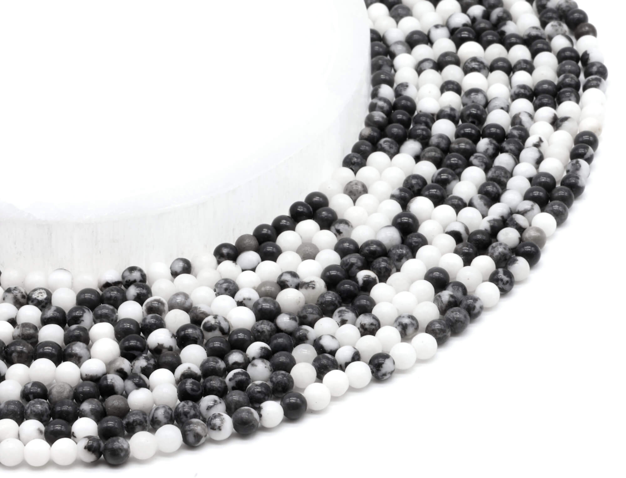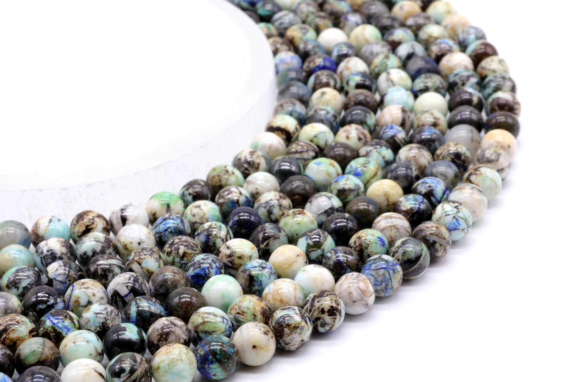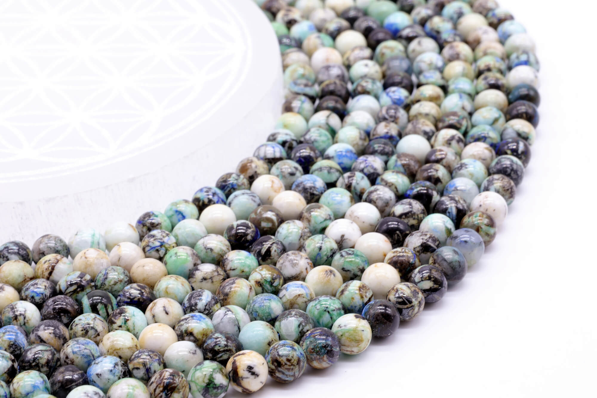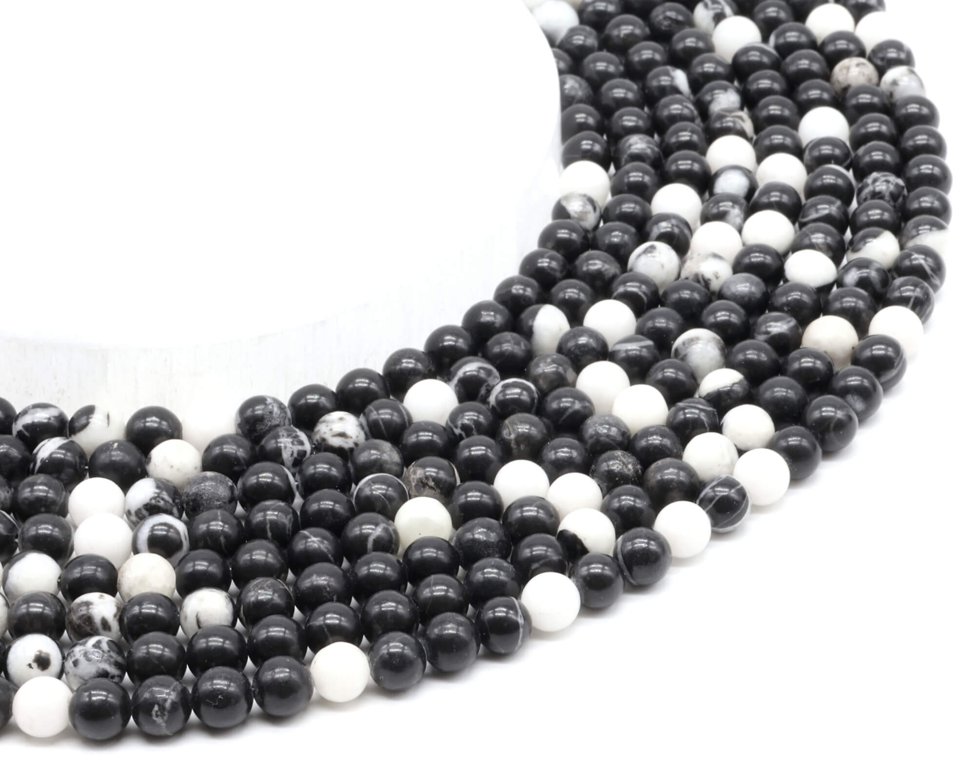 Trabalhamos, para as pérolas, com um agente de importação que nos dá plena satisfação. Os minerais são importados dos 4 cantos do mundo, selecionados e depois montados no local sob a forma de joias. A origem da pedra bruta que serviu para a fabricação de cada fio de pérolas é mencionada na ficha do produto em questão.