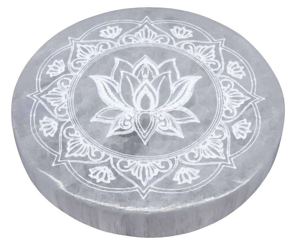 Placa Selenite Lotus Mandala 10cm