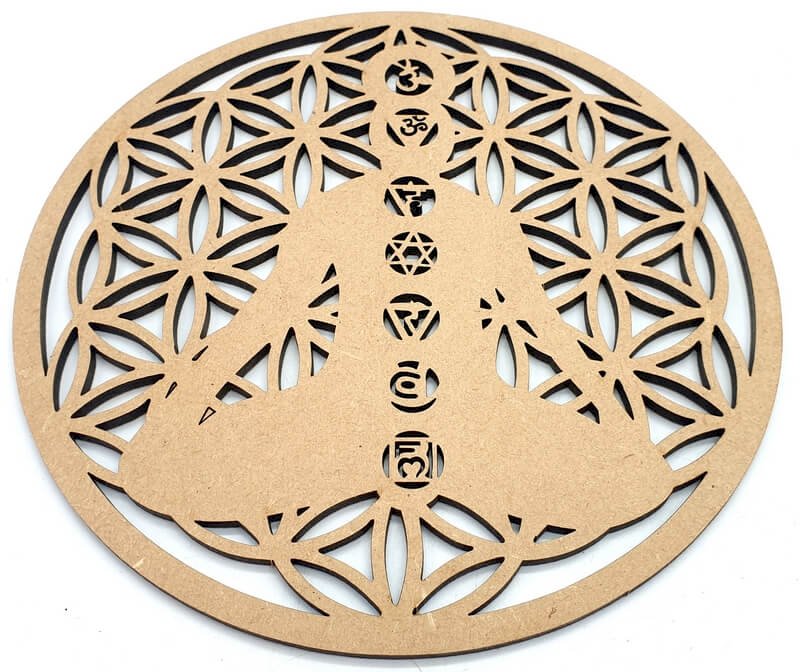 Placa Madeira 7 Chakras Flor de Vie 20cm