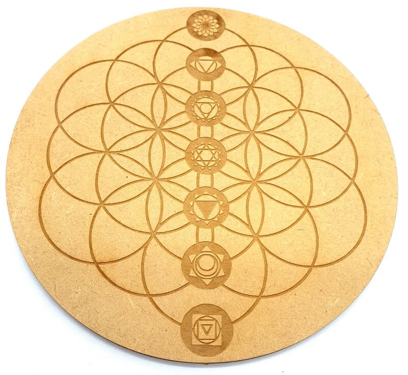 Placa Madeira Graine de Vie & Chakras 15cm
