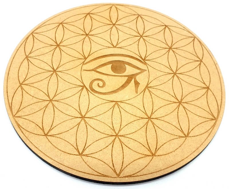 Placa Madeira Oeil d'Horus Flor de Vie 30cm