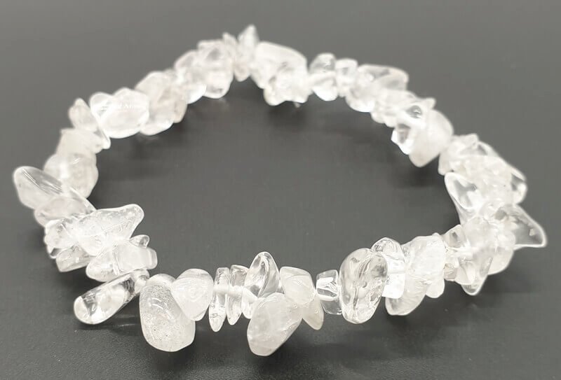 Pulseira elástica em lascas de pedras de Cristal de Rocha. Tailo universelle.