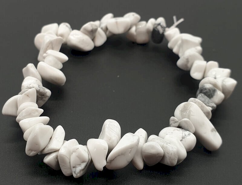 Pulseira elástica em lascas de pedras de Howlita Branca. Tailo universelle.