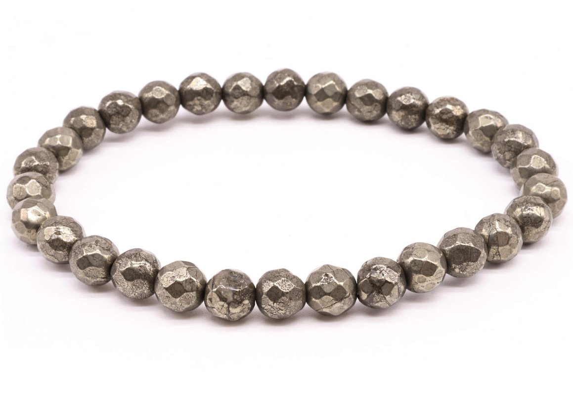 Pulseira de pirita com contas facetadas de 6 mm
