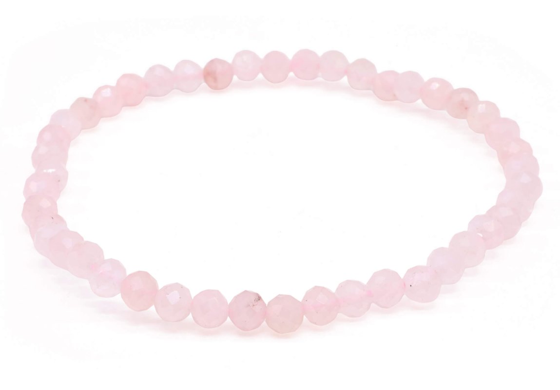Pulseira de quartzo rosa com contas facetadas de 4 mm